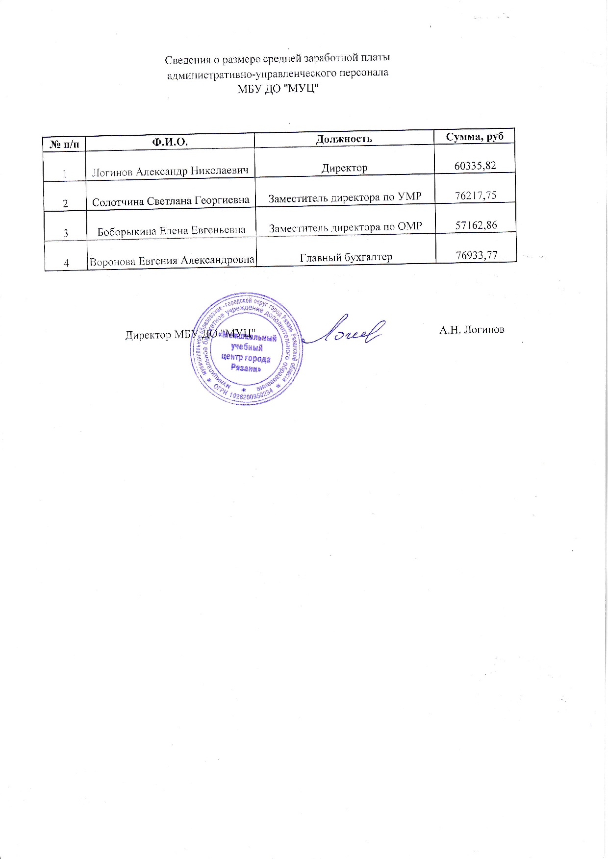 | 3 | Среднемесячная заработная плата администрации МБУ ДО "МУЦ" |